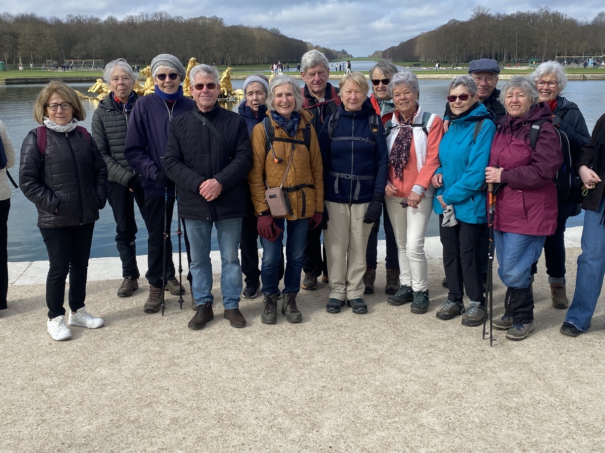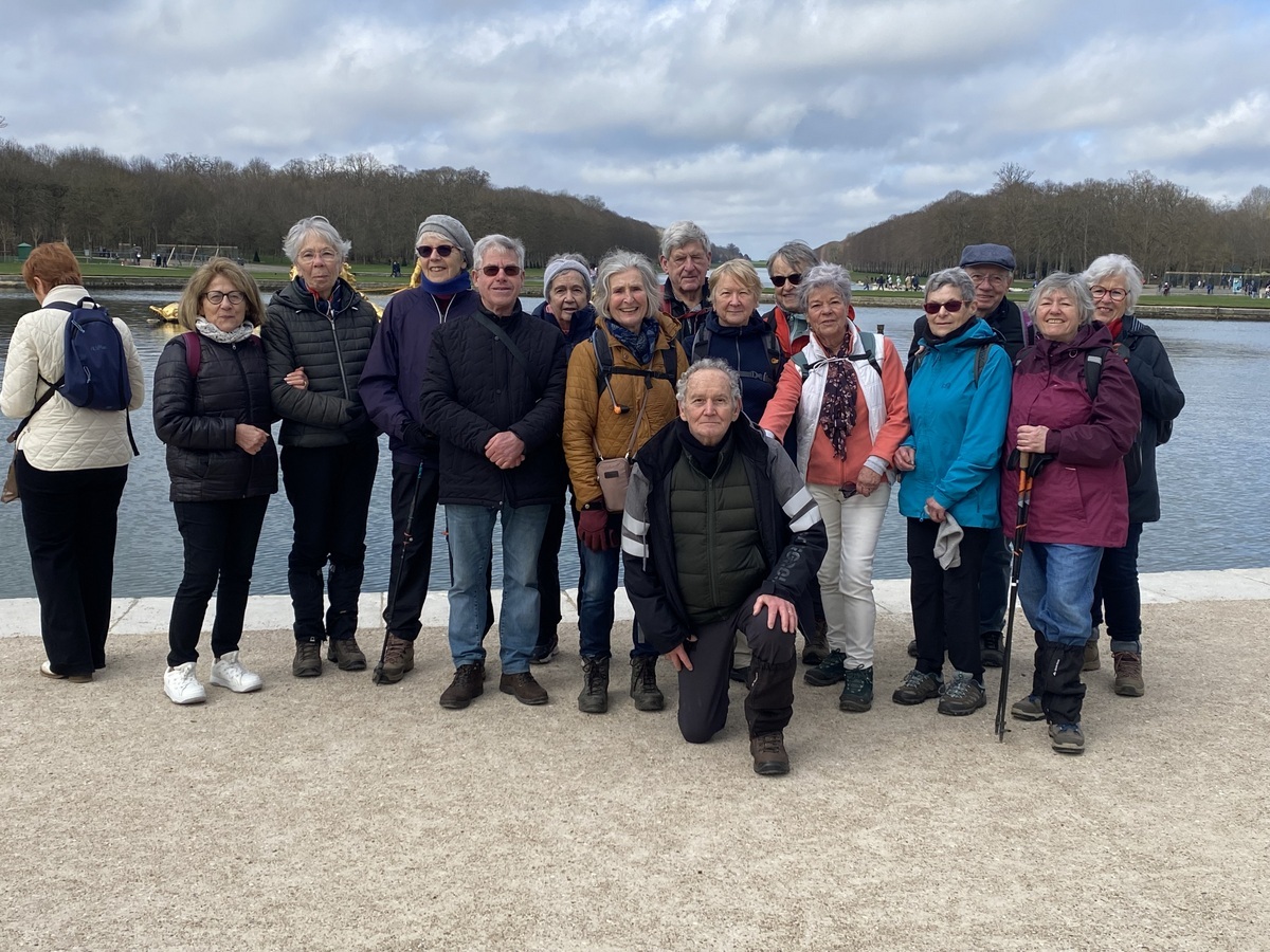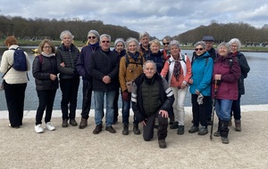 Palais de marbre rose et de porphyre avec des jardins magnifiques il a été élevé par Jules Hardouin-Mansart sur l’emplacement du Trianon de Porcelaine, que Louis XIV avait fait construire en 1670 pour y fuir les fastes de la Cour et y abriter ses amours avec Madame de Montespan. Nous avions prévu de déambuler sur les jardins du grand Trianon et le hameau de la reine mais le guide ne s’était pas suffisamment renseigné et les jardins du grand Trianon comme ceux du hameau de la reine n’ouvraient au public avant midi. Qu’à cela ne tienne nous avons fait, à la place, le tour du grand canal. Nous voilà prêts à monter en direction du château, non sans faire une photo de groupe devant le bassin de Neptune avec en arrière-plan le grand canal.