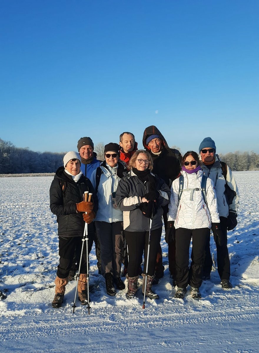 Cette année pour la traditionnelle fête des Reines et des Rois, la neige est encore une fois de la partie ! La rando de 9h30 accompagnée par Émilio a regroupé 4 courageux, celle de 9h45 emmenée par Jacqui a compté 9 randonneurs.