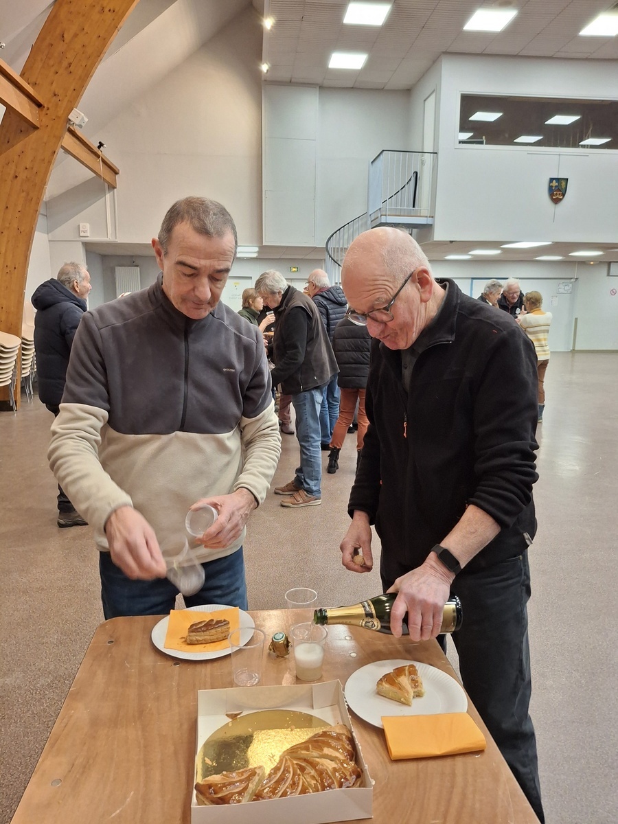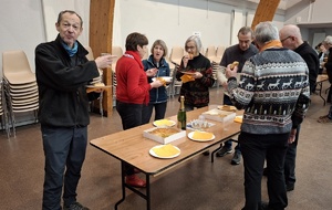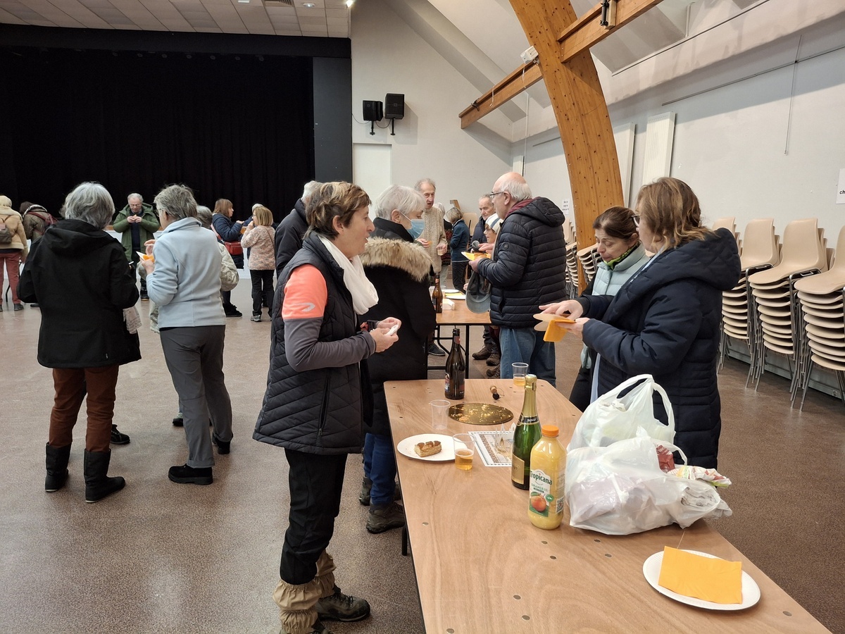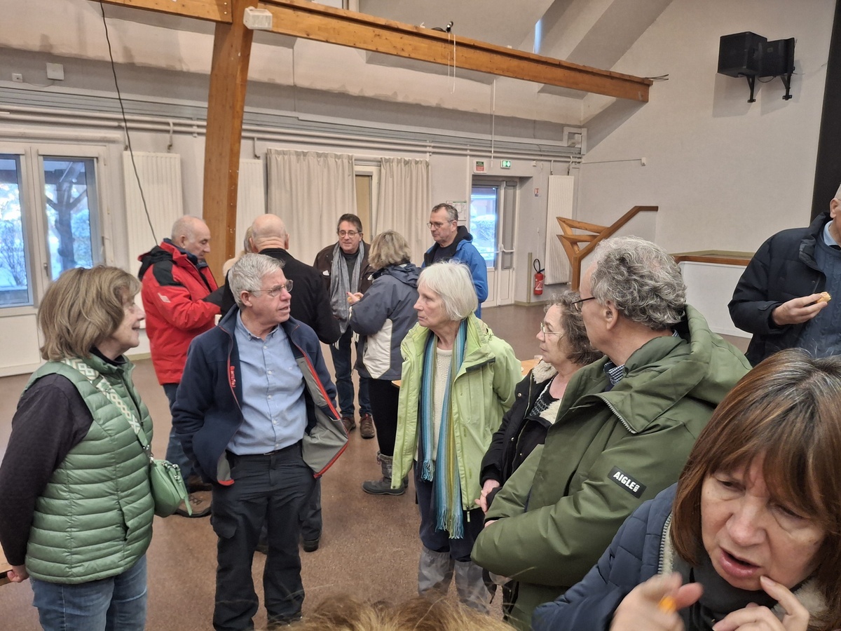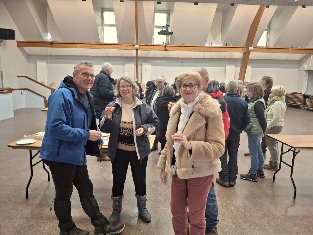 A 11 heures, Jean Louis et Pascal nous ont accueillis à la salle polyvalente. Petit discours de notre président à la tête de 115 adhérents qui recherche des bénévoles pour gérer l'administratif et pour accompagner les randos le mardi...