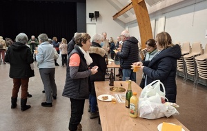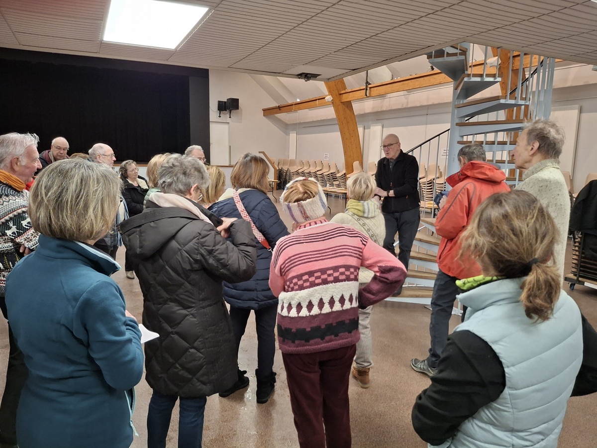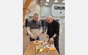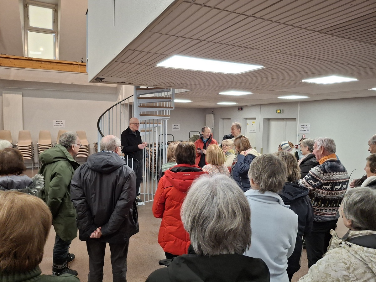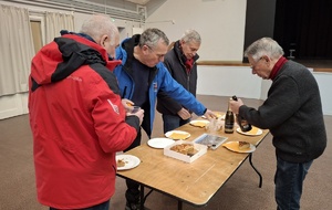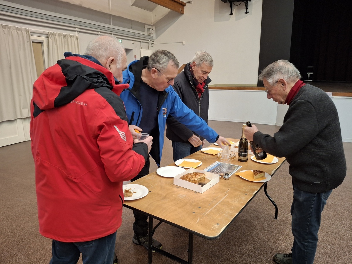 A 11 heures, Jean Louis et Pascal nous ont accueillis à la salle polyvalente. Petit discours de notre président à la tête de 115 adhérents qui recherche des bénévoles pour gérer l'administratif et pour accompagner les randos le mardi...